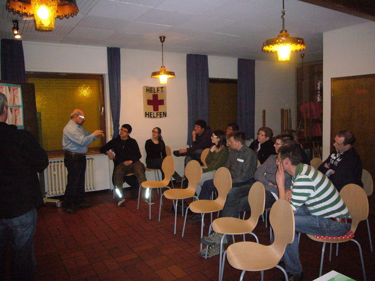 Sie erklärten uns mit viel Motivation, wie die Atmung ohne Kehlkopf funktioniert, vor allem aber, wie wir bei einem Notfall mit Sauerstoffmangel handeln müssen. Der Abend war für die Ersthelfer sehr lehrreich. Es wurden sehr viele Fragen gestellt, die die beiden Herren in Theorie und Praxis beantworteten.