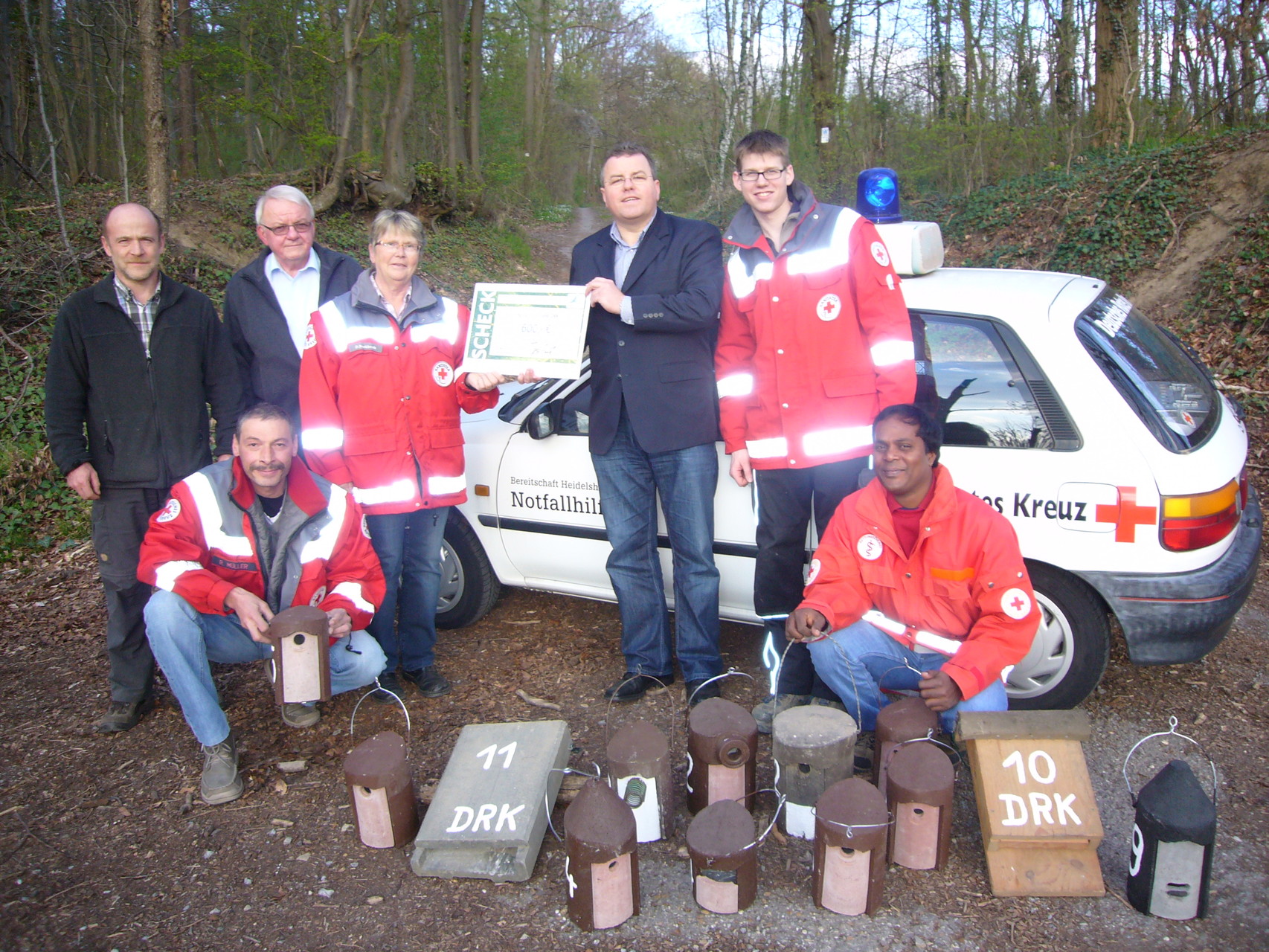 Im Mai 2014 erhielt der DRK-Ortsverein von der Allianz Versicherungs-Gesellschaft Herrn Jürgen Greif einen Scheck über 600.-- € aus der Aktion „Blauer Adler“. Für diese Spende kauften wir 13 Nistkästen im Wert von 200.--€, hängten sie in der Nähe der Odenwaldhütte auf und verpflichteten uns gleichzeitig, diese auch im Herbst wieder zu reinigen. Wie aus den beigefügten Bildern zu ersehen ist, hat diese Aktion viel Spaß gemacht.